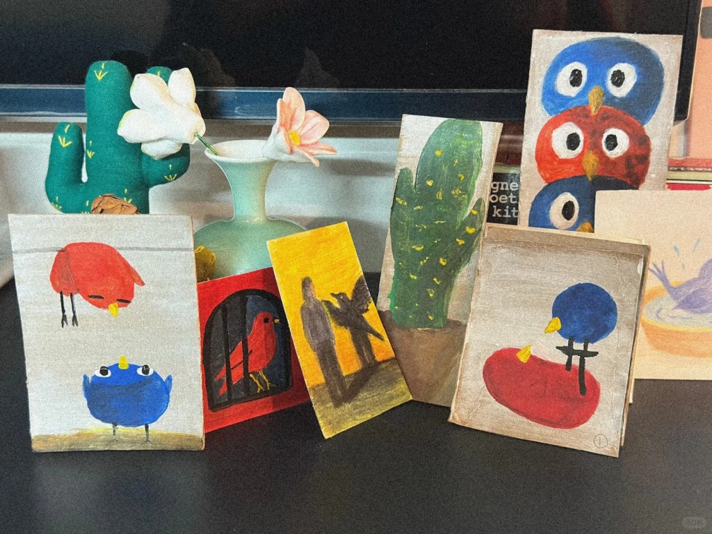 – Ongoing experiments across different media, including painting, Procreate drawing, creative coding with R, and 3D modelling
